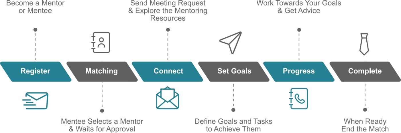 6. Connect with your match to message, schedule meetings, and build your mentoring relationship